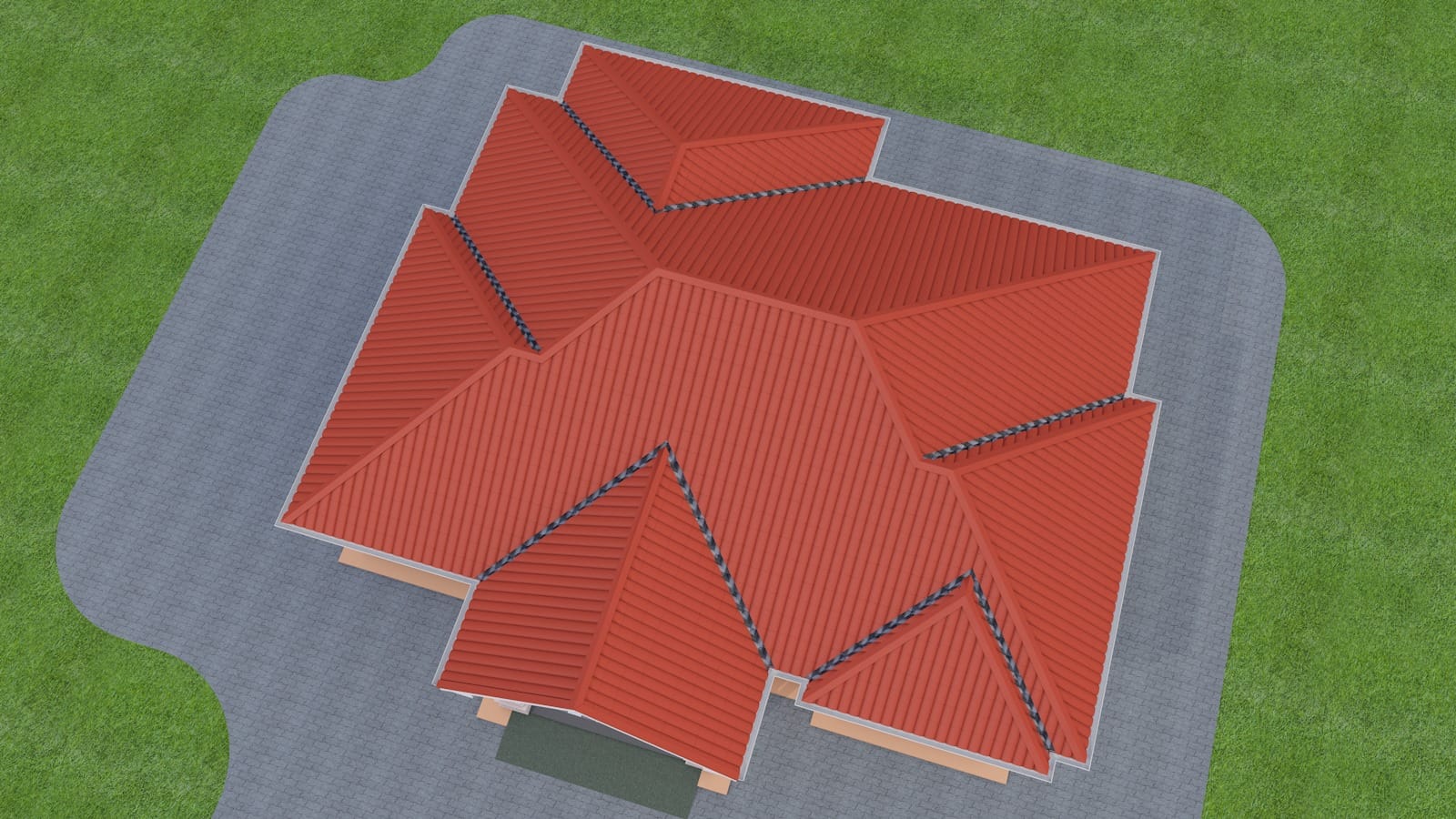 The sloped red roof is not only aesthetically striking but also built to withstand different weather conditions, offering long-term durability and charm.Stone-Clad Exterior Walls