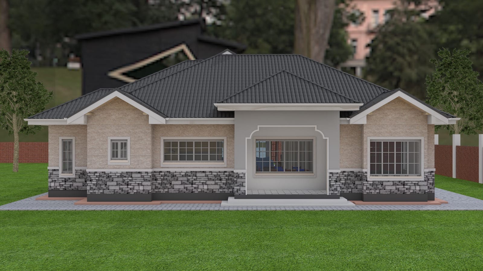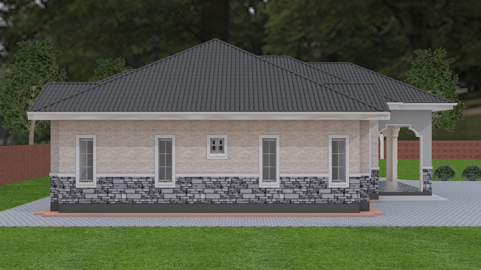 The layout incorporates four spacious bedrooms, including a master bedroom with an ensuite bathroom, ensuring privacy and comfort. A common washroom serves the other bedrooms, making it suitable for family members and guests alike. The house also features both entry and rear porches, providing welcoming outdoor spaces that can be used for relaxation or casual gatherings.