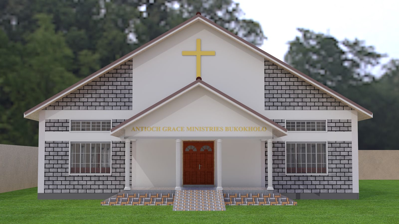 The front façade is defined by a welcoming verandah supported by classic columns, giving members and visitors a sheltered entry point before stepping into the sanctuary. A cross placed prominently at the front reinforces the spiritual identity of the building, while the carefully arranged exterior finishes enhance durability and aesthetic appeal.